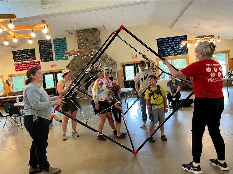 In 2025, Pilgrim Lodge was the grateful recipient of a Deering Grant which supported the funds to get our low ropes course back online after a year of closure. The funds allowed for the addition of two new elements to our low ropes course, a Multi-Swing Nitro Crossing and a KYooB added to our challenge course along with the baseline inspection needed to get our equipment safely back online. Utilizing an opportunity for matching funds for professional development available through a statewide grant program in Maine, we were able to train the full Program Staff of Pilgrim Lodge in low ropes course facilitation to ensure that all staff knew how to provide programming on the new elements added to the course.